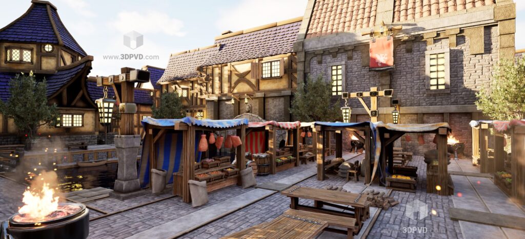 Medieval castle & town fly-through